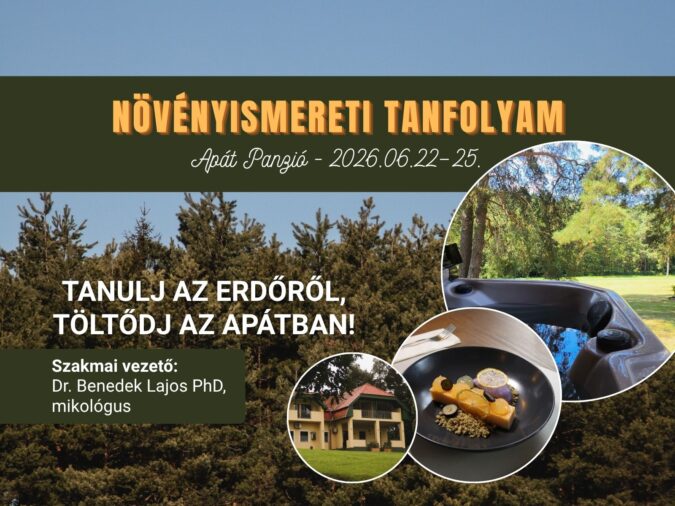 Növényismereti tanfolyam a Vendvidék szívében 2026.06.22–25. Fedezd fel az Őrség és a Vendvidék gazdag növényvilágát egy különleges, többnapos terepi képzés keretében! Szakmai vezető: Dr. Benedek Lajos PhD, mikológus Mit kínál a program? Az Őrség és a Vendvidék legfontosabb természetes élőhelyeinek megismerése Védett őrségi növényfajok bemutatása a természetben Gyógynövények és fűszernövények felismerése és…