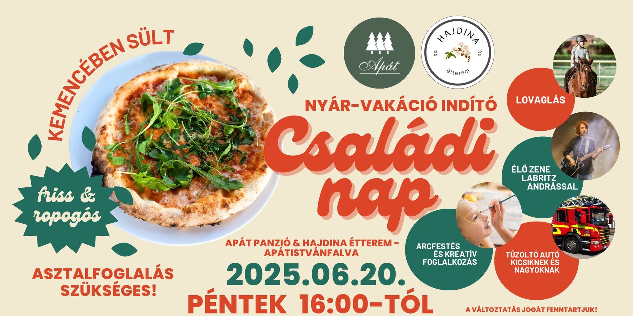 Június 20-án, pénteken 16:00-tól újra megrendezzük a nyár legínycsiklandóbb eseményét — a Családi Pizza napot, ahol minden a kemencében sült, forró pizzáról szól! 🔥