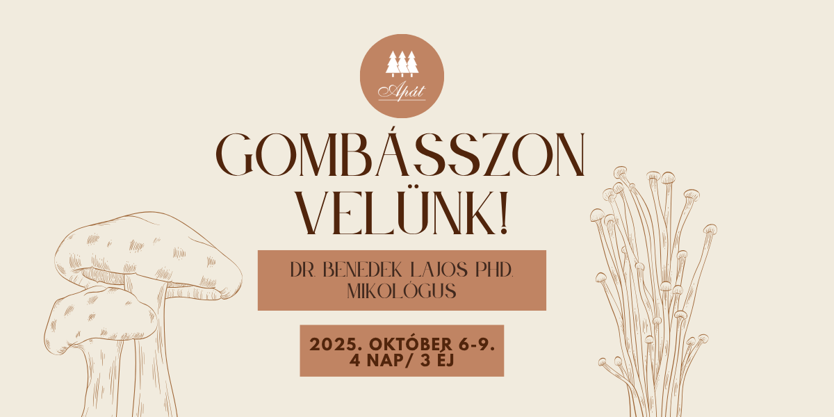 2025. október 6–9. között ismét elindítjuk gombaismereti tanfolyamunkat az Apátban – szeretettel várjuk az érdeklődőket, akik szívesen mélyednének el a hazai gombavilág izgalmas világában!