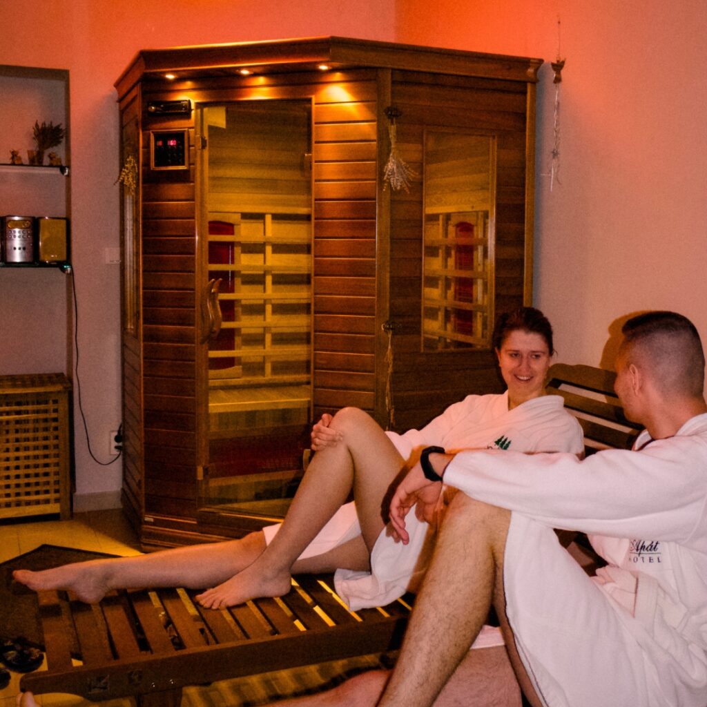 Finn szauna, melynek ablaka a természetre néz, infraszauna, sószoba és masszázs vár a teljes feltöltődéshez.